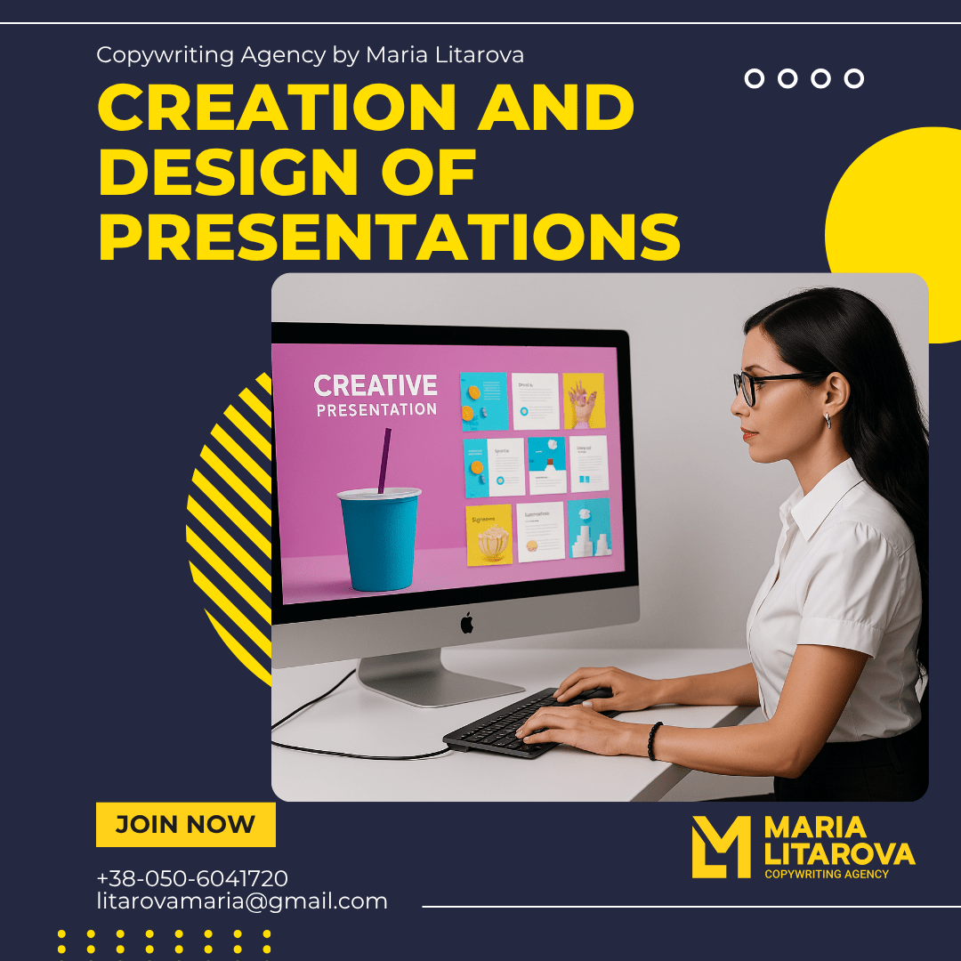 Створення та оформлення презентацій — важлива частина комунікаційної стратегії будь-якої компанії чи проєкту. Незалежно від того, потрібно представити нову бізнес-ідею, обґрунтувати інвестиційний проєкт або провести навчальні курси, якісно виконана презентація здатна суттєво покращити сприйняття інформації та підвищити інтерес аудиторії.