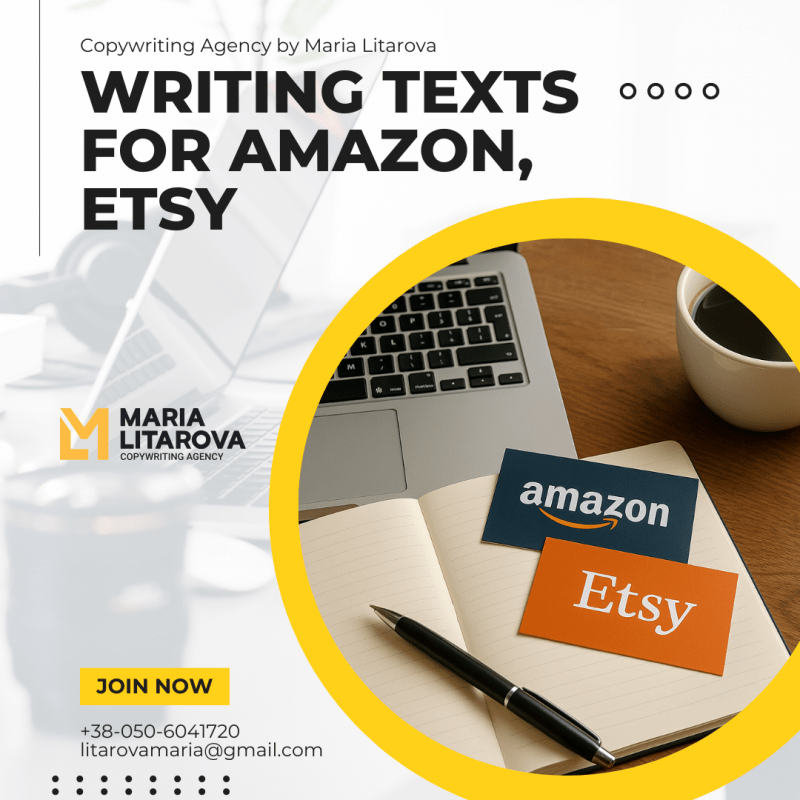 Вартість написання текстів для Amazon та Etsy залежить від типу контенту та обсягу роботи.