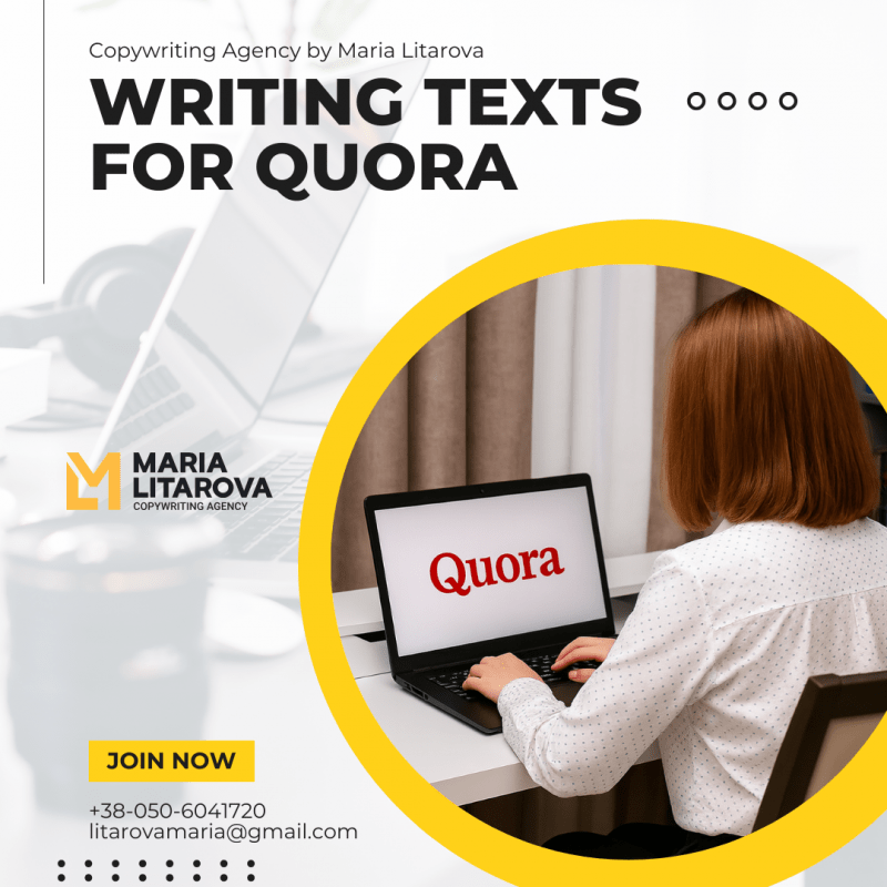 Якісне написання текстів для Quora – ключ до успіху! Пропонуємо професійні послуги російською, українською та англійською мовами. Фахівці агентства допоможуть створити інформативні та привабливі відповіді, які не лише привернуть увагу, а й зміцнять репутацію.